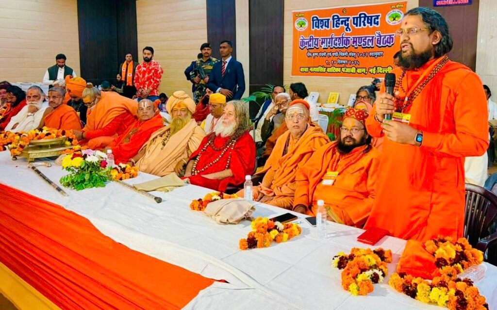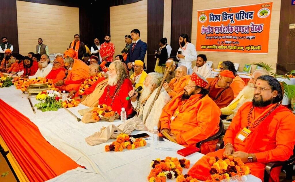 Alongside them, many other revered saints, mahants, and VHP office bearers from across India were present, making the meeting a significant confluence of spiritual leadership and organizational vision. This event highlighted the collective resolve of Hindu spiritual leaders to safeguard dharma, strengthen cultural identity, and contribute to national unity.