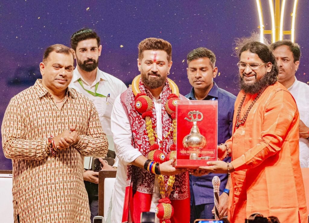 Popular young Union Minister Chirag Paswan is an inspiration for today’s youth, and all the youth of Goa are urged to follow the example of leaders like him. Chirag Paswanji is working today to take India to greater heights. The Goa Spiritual Festival is being accomplished by the divine will of Gau Mata, and through this medium, an appeal is made to the entire world to come to Goa to learn yoga and culture. Goa’s culture embodies ‘Atithi Devo Bhava.’ All saints and mahants are also requested that wherever they travel, they should present the true identity of Goa before their disciples. This appeal was made by Padma Shri Sadguru Brahmeshanand Acharya Swamiji.