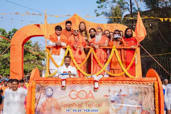 Goa is the sacred land of Lord Parashurama. Today, the Chief Minister of Goa is striving for the upliftment of Sanatan Dharma. The entire Goa has become imbued with saffron spirit, and efforts are being made so that Goa is known not as a land of indulgence but as a land of yoga and spirituality. Brahmeshanand Swamiji is leading this sacred Parashuram Bhoomi, and words are insufficient to praise him. This was expressed by the President of Akhil Bharatiya Akhada Parishad, Mahant Ravindrapuri Swamiji.