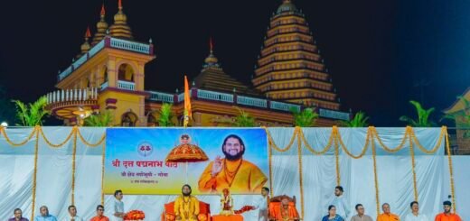 International Spiritual Leader and Shree Datta Padmanabh Peeth, Peethadhishwar H. H. Sadgurudev Brahmeshanand Acharya Swamiji honoured at the Rajbhavan Goa by the Governor of Goa HE Shri P S Shreedharan Pillaiji and Governor of Himachal Pradesh HE Shri Rajendra Arlekarji for being awarded Padma Shri 2022 by Government of India in the Spirituality category.